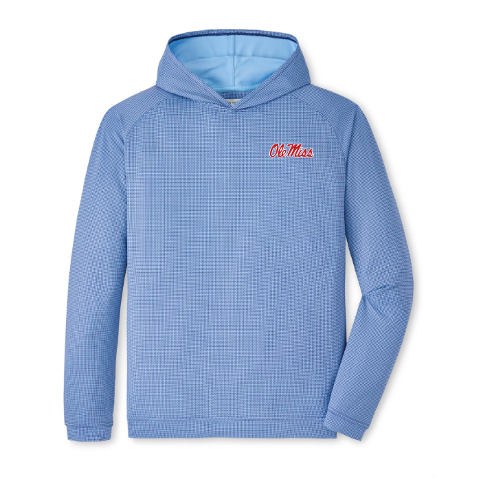 Peter Millar Pine Houndstooth Performance Hoodie Sport Navy Ole Miss CFP Fiesta Bowl 2026